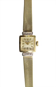 ladies watch "VINTAGE", yellow gold 585/000, signed ZentRa, 8 whitediamonds , folding clasp (with tension spring), lenght = 17,5, total 19.6 g