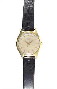 Herren-Armbanduhr, "VINTAGE", Schweiz 1950er Jahre, GG 750/000, sig. REVUE (AUTOMATIK), Strichindex/arab. Minuten, gedr. Boden (einige Druckstellen), Kal. 80, N° 142306, Hammeraufzug, D = 36,6 mm, Lederband mit Dornschließe, Uhr muß überholt werden !