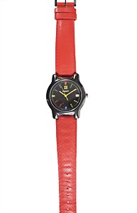 wristwatch "VINTAGE", DIGIROBO TOKIMA G.K. 1983 POPY JAPAN, black watch case, removable and transformable into a robot, digital, leather watchstrap with pin buckle, strongly worn, clock is running !