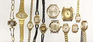 lot: 12 men's- and ladies' watches, 3 Junghans, 2 BWC, 1 Lanco, 1 Alba (automatic mechanism), 1 Ermi (automatic mechanism), 1 Parma, 1 NICOLA WATCH, 1 ERMI automatic mechanism and others, unchecked !