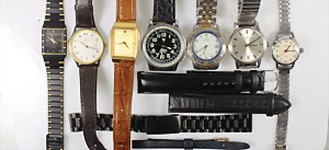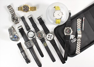 lot: 8 men's watches, 1 Seiko chronograph, 1 Ascot chronograph, 1 "DANIEL HECHTER" chronograph, 1 Lorus chronograph with metal watchstrap , 1 Astrom chronograph with metal watchstrap (gold colored), 1 Tissot, 1 Bering, 1 Citizen chronograph with case (replacement watch strap made of metal and screwdrivers) and 1 leather watchstrap (calfskin), unchecked !