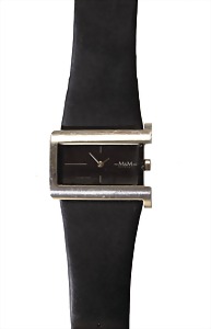 ladies watch, M & M around 2010, steel, quartz, baton index, pressed bottom, N° 11865, leather watchstrap with pin buckle, clock runs !