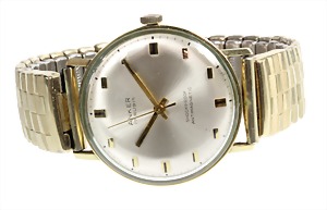 Herren-Armbanduhr, "VINTAGE" 1960er Jahre, Handaufzug, GG 585/000, Zentralsek., Punkt Index, sig. ANKER, Gehäuse ca. D = 33,0 mm, Flex-Band, Uhr läuft !