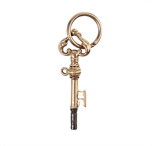 Taschenuhrenschlüssel, 2.Hälfte 19.Jhd., GG 585/000, in Form eines SCHLÜSSELS, plastisch ausgeformt, Aufhängung als Sprengring, H = 47,0 mm