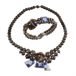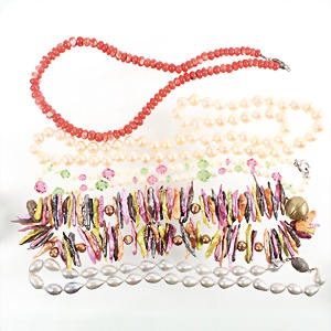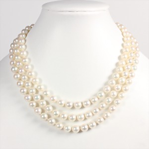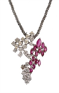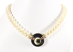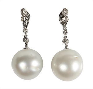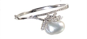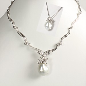 decorative necklace, white gold 585/000, with removable pendant, South Sea pearl 30.24 ct, 3 brilliants c. 0.15 ct tw-if (flawless), 7 diamonds with marquise cut c. 1.33 ct tw-if (flawless), height = 29.6 mm, necklace, S-shaped wire arches, in the joints are 25 brilliants c. 1.76 ct tw-if (flawless) worked into, small box clasp with securing eye , lenght = c. 38.0 cm, 1 box chain, lenght = 48.0 cm (intermediate eyelet at 42.0 cm), (with 2 S-shaped spare chain links) total 28.4 g, with receipt ! A necklace for a special evening!