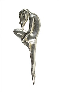 brooch with art nouveau style, silver colored, signed TN - CO ? (illegible), plastic formed woman, height = 65.8 mm