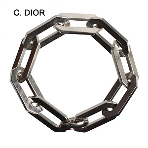 designer bracelet, C. DIOR 1970s, metal white, signed 1972 Chr. Dior Germany, octagonal worked chain links, folding clasp, lenght = c. 21.0 cm, good/very good condition !
