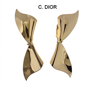 a pair of ear pendants, gold colored, signed Chr Dior GERMANY, jointed in the middle, height = 75.3 mm