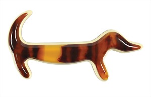 1 brooch by Lea Stein (Paris), dachshund not signed, laminated cellulose acetate, brooch element: metal, c. 69 x 35 mm, Lea Stein was strongly influenced by the ART-DECO