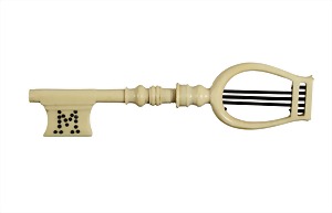 sewing needle holder shaped like a key, first half of the 19th century, monogram: M, ivory with a lyre, laundry women in big household worn such containers, to have always sewing needles ready, lenght = 110.0 mm (with screw thread) No shipping outside EU!