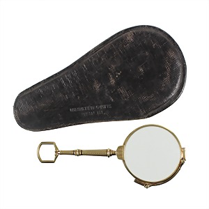 monocle around 1900, yellow gold 585/000, delicate ornament at handle, with original leather case, nice condition, lenght = 10.8 cm, opened c. 13.0 x 9.5 cm, total 26.3 G