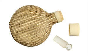 Kleines Glasflacon 1920er Jahre, eingeschliffener Glasstöpsel, Flacon mit Reisstroh ummantelt, Schraubdeckel aus Elfenbein, H = 67,0 mm Für diesen Artikel ist ein Versand in nicht EU-Länder leider nicht möglich !