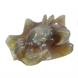 Briefbeschwerer/Objekt, KRABBE, Opal (Australien), vollplastisch ausgearbeitet, grüne-, blaue- und rote Farbtöne, ca. 66,0 x 55,0 x 32,0 mm, total 61,1 g (305,6 ct), die Krabbe hat beim Kampf ein Bein verloren !