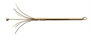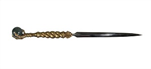 paper knife 1920s, turned handle (gilded), clawencloses a colored stone ball, lenght = 18.0 cm