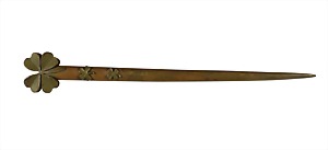 paper knife, Vienna bronze around 1900, at the end of the handle with a four-leaf cloverleaf (on the other side three cloverleaves), lenght = 18.5 cm