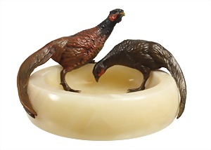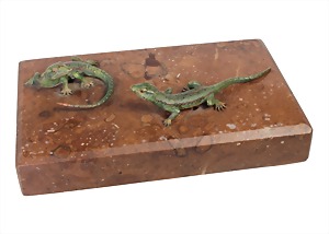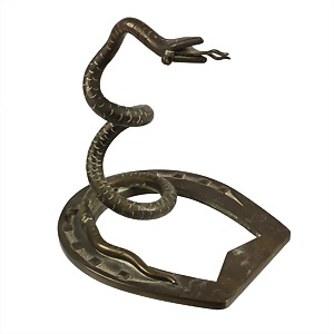 fob watch stand around 1900, bronze, horseshoe with a winding snake, height = 104.2 mm