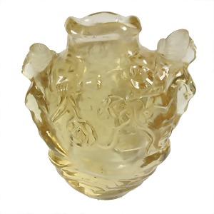 small vase, art nouveau around 1890/1900, cut citrine, to the side with two female nudes, stylized flower decor is meandering around the vase, height = 62.7 mm, total 841.0 ct (168,1 g)