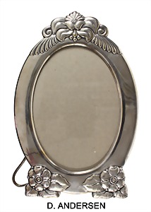 picture frame, silver-plated metal , 1930s, signed DAVID ANDERSON, (Norway), stylized flowers and leaves are decorating the frames, on the reverse a holding device, c. 16.5 x 25.5 cm