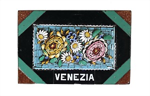 Briefbeschwerer, Italien Anfang 19.Jhd., Mikromosaik, farbenfrohes Blütenbouquet, Inschrift: VENECIA, ca. 72,0 x 47,5 mm
