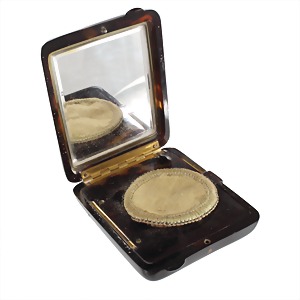 Dose, Anfang 20.Jhd., Kupfer vergoldet, floral bemaltes Glas, Reste von Emaillelack, sehr fein kordierte Drahtbelötung, Scharnierdeckel, 60,0 x 47,0 x 17,6 mm