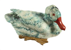 paperweight/object, crab, opal (Australia), plastic worked, green, blue and red color shades, c. 66.0 x 55.0 x 32.0 mm, total 61.1 g (305,6 ct), the crab has lost a leg in the fight!