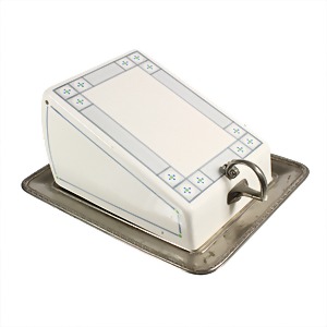 lot: small vase and box with cover, "ART-DECO" 1930/'40s, silver OVERLAY, vase, signed KPM Krister GERMANY, porcelain blue, in Asian style, branch with bird, flowers and leaf motifs painted, height = 10.5 cm, diameter = c. 8.3 cm, box with cover, signed Veyhl GERMANY, colored blossom with leaves, height = 4.6 cm, diameter = 9.9 cm, nice condition !