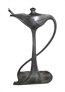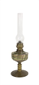Petroliumlampe, JUGENDSTIL um 1900, Zinn, signiert: A. Meier ? H = ca. 22,0 cm, sehr schöner Entwurf !