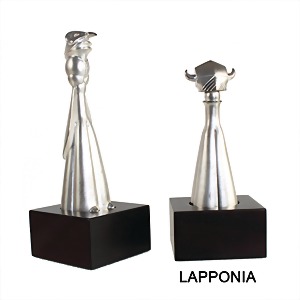 2 chess pieces, Lapponia Finland, king and queen, Sterling silver, king signed: Zoltan Popovits, No° 7/200, height = 10.9 - 13.4 cm, figures is plastic worked, on a wood base, as good as new !