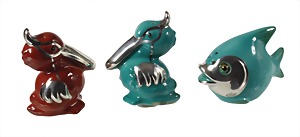 Salz/Pfefferstreuer, GOEBEL 1950er Jahre, Porzellan bemalt, Overlay, 1 Fisch und 2 Pelikane