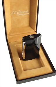 lighter, S.T. DUPONT, Minijet lighter, chrome and bright black paint, c. 54.5 x 32 x 11.5 mm, Dupont casket (not suitable to it but original Dupont !)
