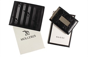 Lot: 1 GUCCI Taschenspiegel im Lederetui mit Original Schatulle; 1 Geldbörse, MOLLERUS Schweiz mit Original Schatulle, ca. 12,1 x 9,2 cm, neuwertig !