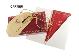 Cartier-Brille, VINTAGE der1980er Jahre, Cartier Tank, signiert: Cartier PARIS N° 8002421, Brillenfassung Gold 22K mit Papieren, im Original-Etui und Reinigungstuch, oberer Steg und Seitenteile bicolor