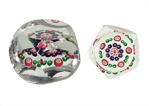 PAPERWEIGHT, Frankreich 2.Hälfte19.Jhd., 5-eckig geschliffen, mit feinem Blumenmosaik, D = ca. 43,0 mm