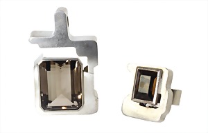Lot: Anhänger u. Ring mit Rauchquarz, VINTAGE" 1960/70er Jahre, Silber 900/000, Ring, Stein ca. 7,5 ct, Ringkopf ca. 22,2 x 26,0 mm, RW ca. 56,5; Anhänger, Stein ca. 50 ct, H = 52,3 mm, total 54,4 g, schwer gearbeitet !