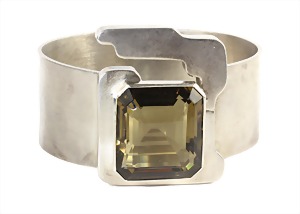 Armreif-/Spange, VINTAGE" 1960/70er Jahre, Silber 900/000, 8-eckiger Rauchquarz ca. 65 ct (27,0 x 25,0 mm), B = 46,2 mm, Innen: 67,0 x 52,0 mm, total 112,2 g