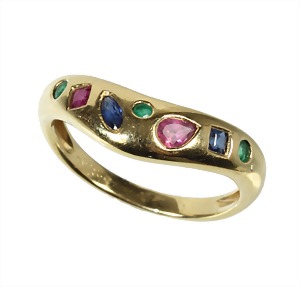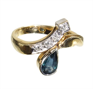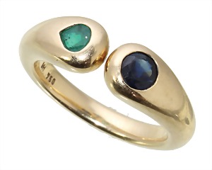ring, yellow gold 750/000, 1 sapphire c. 0.35 ct, 1 emerald drop c. 0.15 ct (both faceted), ring width c. 54