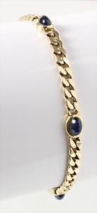 curb chain bracelet, yellow gold 585/000, 5 sapphire cabochons c. 2.5 ct, box clasp beneath with safety catch, lenght = 20.3 cm, total 15.0 g