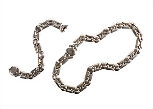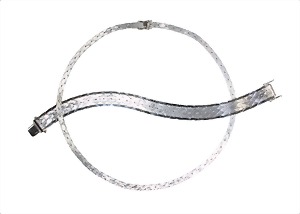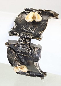 bracelet, silver, from the goldsmithy Kienast (Worms), 4 pair stag teeth, surface manufactured with welding technology, width = 38.0 mm, lenght = 19.5 cm, an unique specimen !