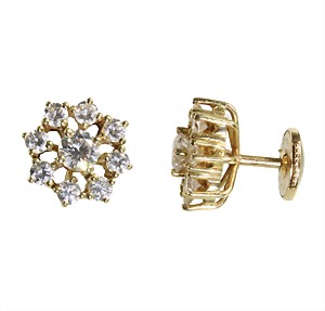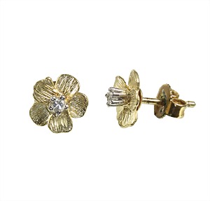 a pair of studs blossom, yellow gold 585/000, 2 brilliants c. 0.06 ct white, diameter = 8.2 mm
