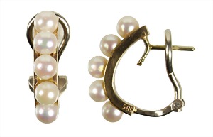 1 Paar Perlcreolen (mit Stift), GG 585/000, 10 Akoja-Perlen D = 4,0 mm, schönes Lüster, H = 18,5 mm