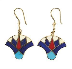 Ohrhänger, ÄGYPTEN, GG 750/000 (geprüft), Einlegearbeit: u.a. Lapis und Türkis, H = ca. 45,0 mm, total 10,5 g