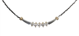 necklace, white gold/yellow gold 585/000, 5 brilliants c. 0.58 ct tw-vsi/si, small box clasp with safety catch, lenght = 42.5 cm, total 7.2 g