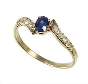 ring, yellow gold 585/000, 1 sapphire c. 0,20 ct (facet), 6 brilliants c. 0.07 ct white, ring width c. 52