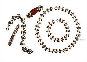necklace "ART-DECO", 1920s, silver 935/000, middle course jeweled with four coral buttons, graphic stylized leaves with ball decoration, lenght = 44.0 cm, For this item a shipping to non-EU countries is not possible !