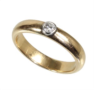 ring, yellow gold 585/000, 1 diamond c. 0.17 ct tw-vsi (Triangel), 2 brilliants c. 0,06 ct tw-vsi/si, ring width c. 56