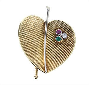 Brosche, Weinblätter mit Trauben, "WILHELM MÜLLER" Pforzheim 1910/20er Jahre, Silber 800/00, sig: WM 800, (unsignierte Brosche von "THEODOR FAHRNER", in Literatur vermerkt !), 2 Lapiscab. H = ca. 41,6 mm, B = 36,5 mm, plastisch schön ausgearbeitete Blätter ! Literatur bei Arnoldsche "THEODOR FAHRNER SCHMUCK" S. 145-147
