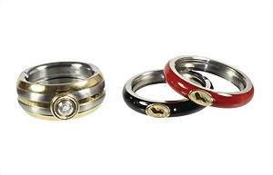 ring, ART-DECO 1930s, silver 800/000, green, blue and black opaque frosted enamel, ring head c. 9.4 x 19.6 mm (old repaired ring shank), ring width c. 52,5