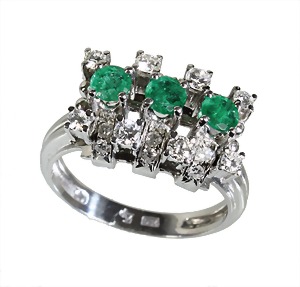 Ring, GG 750/000, 1 Saphir ca. 0,35 ct, 1 Smaragdtropfen ca. 0,15 ct (beide facettiert), RW ca. 54