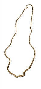 necklace yellow gold 585/000, signed K.K.-B (goldsmith Kienast Worms), 5 old cut- diamonds c. 2.2 ct w-si/p (white set), the both biggest stones with traces of usage at the girdle (diamonds from old jewelry were new bordered !), front height = 22.2 mm lenght = c. 39.0 cm (fits tight at neck!! total 85.5 g)