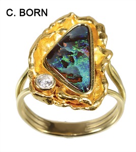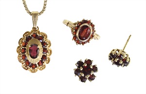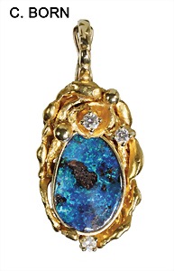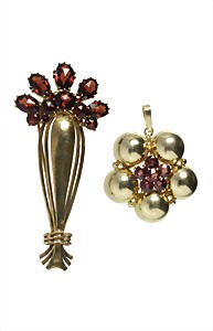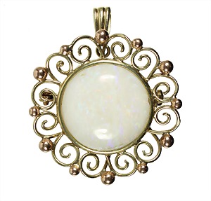 Anhänger, JUGENDSTIL um 1910, GG 333/000, kleiner farbintensiver Opal, darüber roter Stein (facettiert), filigrane Drahtarbeit, H = 35,9 mm